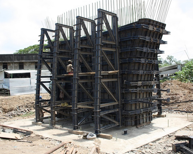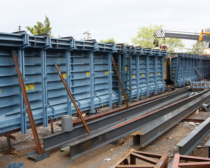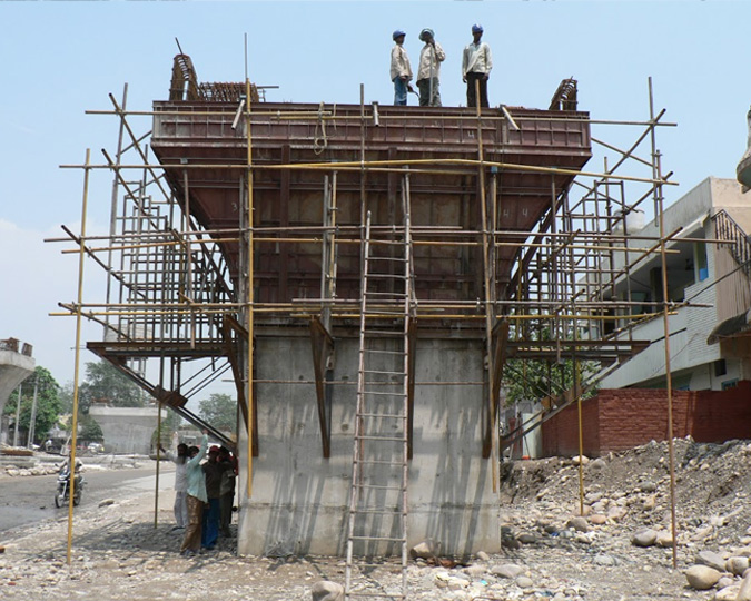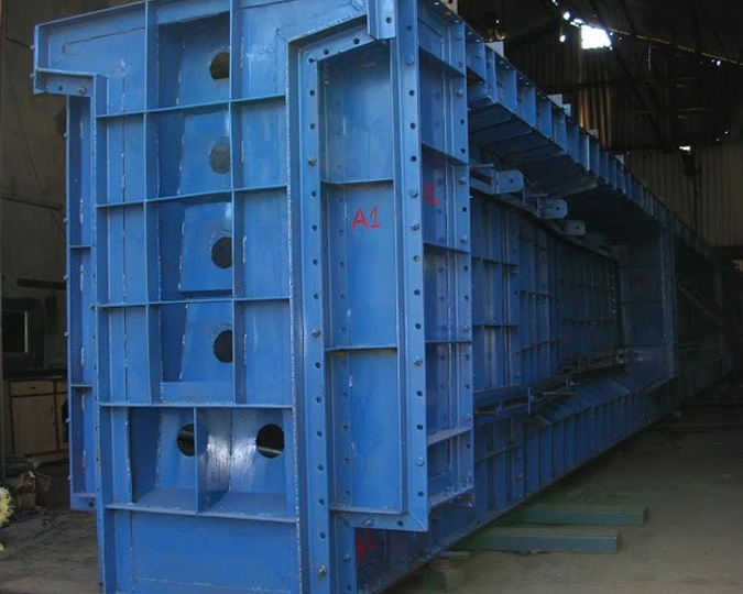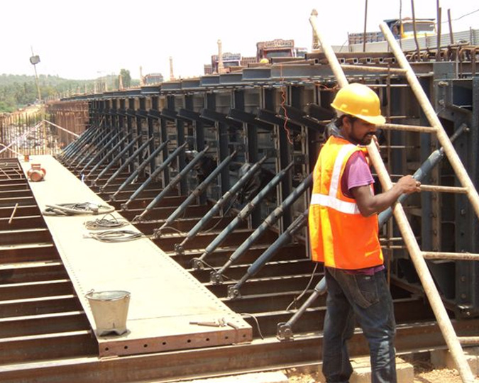 Box Girders are casted with majority of standard size from work plates, which were to be reused as other form work plates. These girders are supported by Trussels and standard cup lock system
